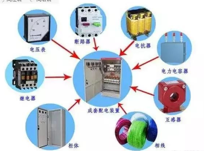成套设备主要分为:0.4kV、0.69kV、1.2kV低压开关柜;3.6kV、7.2kV、12kV、24kV中压开关柜(目前发展趋势)、40.5kV高压开关柜,动力箱(柜)、照明箱、控制箱(柜、台)、保护屏、直流屏等。